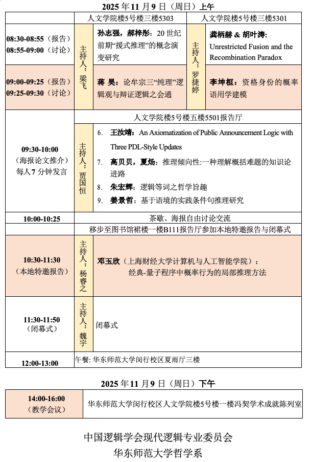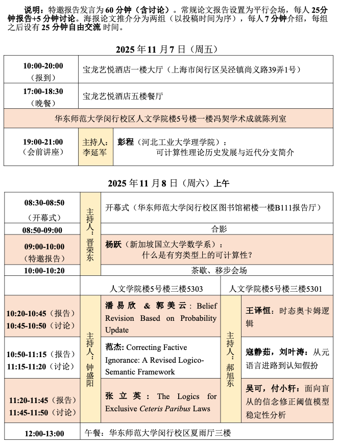 第 19 届全国现代逻辑学术研讨会日程表(更新版)